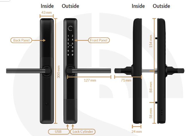 | Unlocking methods | Smart Phone Apple Watch Fingerprint Passcode Proxy Fob / Phone Tag Emergency Key Alexa (needs gateway) Google Home (needs gateway) |